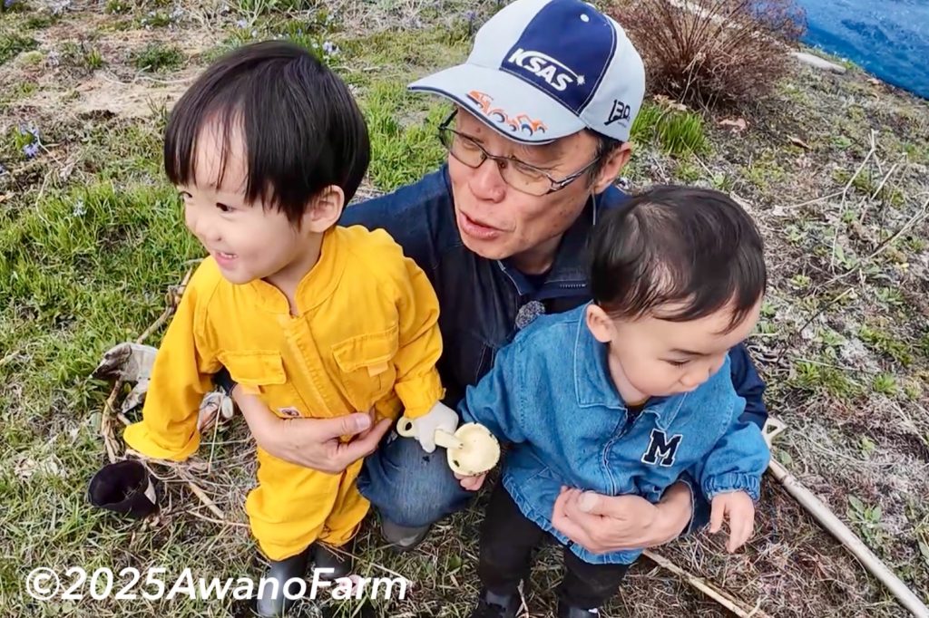 まずは、パラソイラ+アッパーロータリーで整地を行いました。午後からは残り半分の北海コガネの種まきを開始しました。畑の土が乾いて、スムーズに作業する事が出来ました。週間天気予報よりも雨が降らず、本当に良かったです。