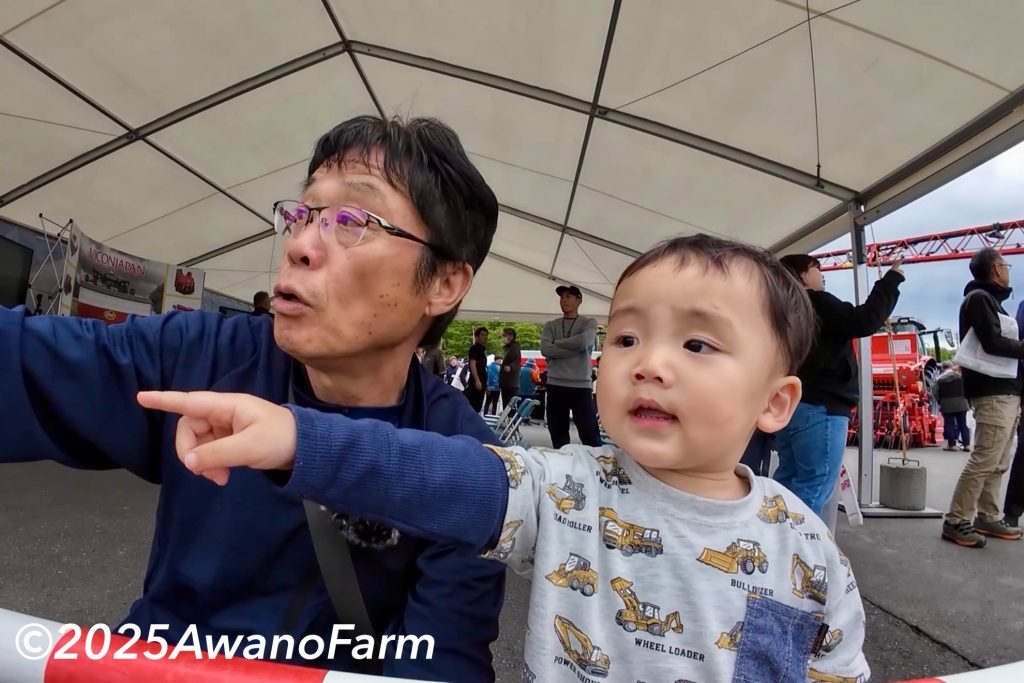 千歳で開催されたビコンジャパンさんの展示会、多くの皆さんで賑わっていました。以前使わせて頂いた機械も沢山展示されていて、とても楽しく見学できました。トラクターに乗れなくて不機嫌だったお孫ちゃん2号君もスプレーヤーの実演を見て大喜びでした。セクションコントロールはもとより、障害物を自動回避する装置にとても興味を持ちました。キッチンカーでの食事やドリンクも事前受付で頂けて、とても楽しい展示会となりました。