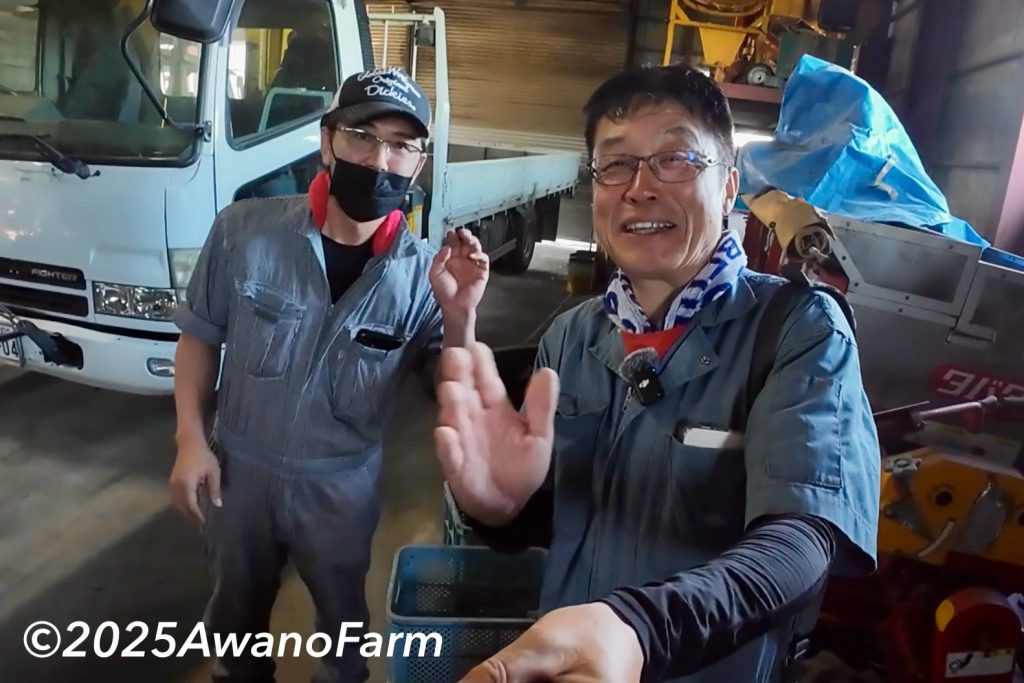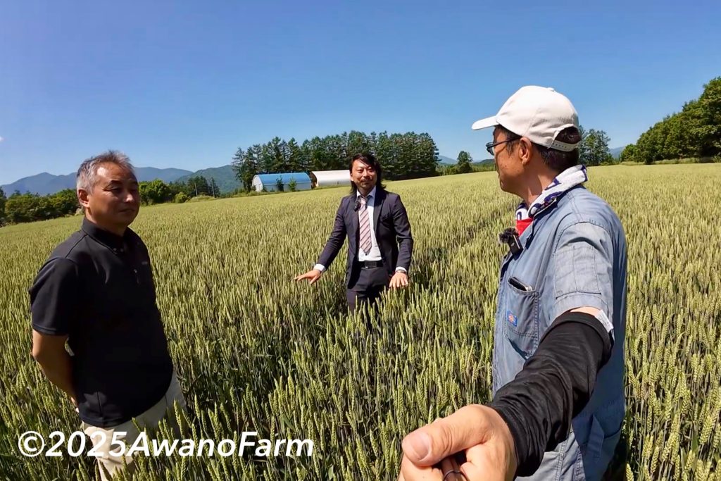 2025年6月24日前田さんとビコンの方にダマで可変播種した小麦畑を見てもらいました。