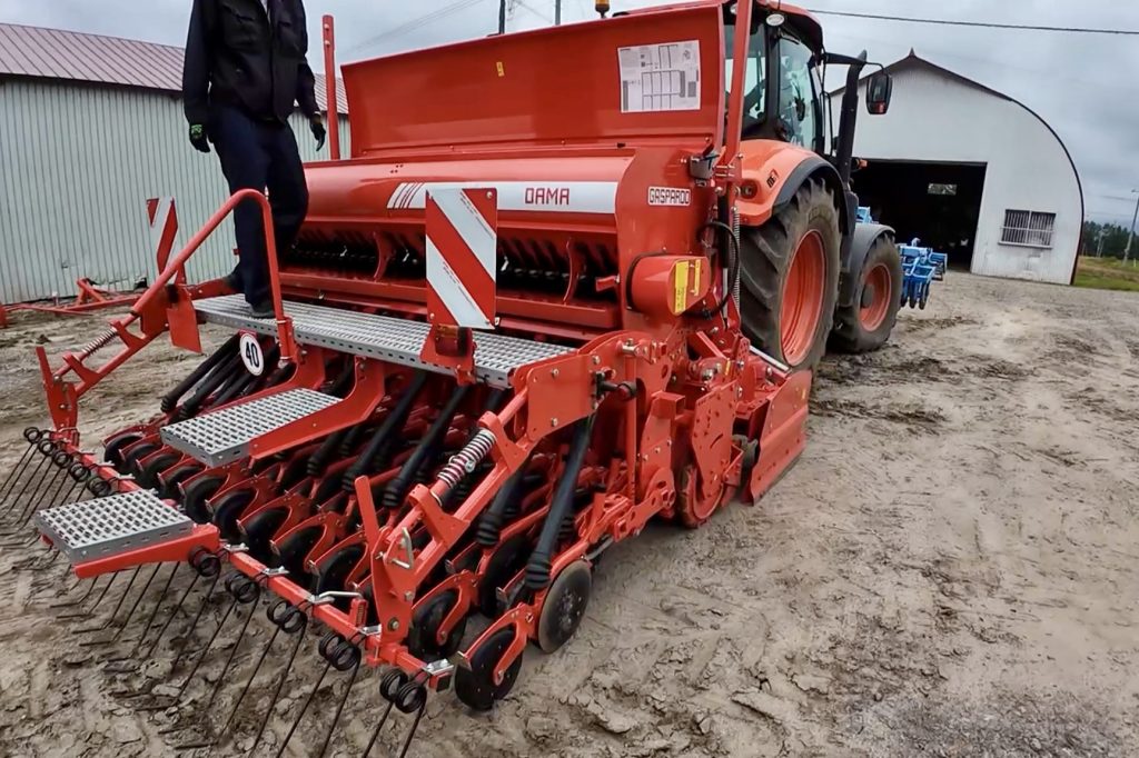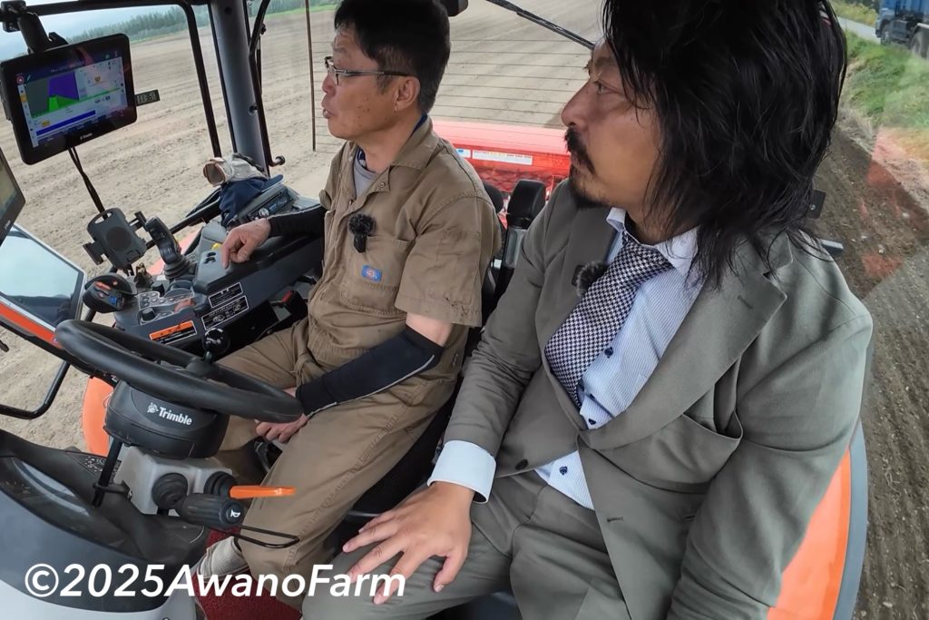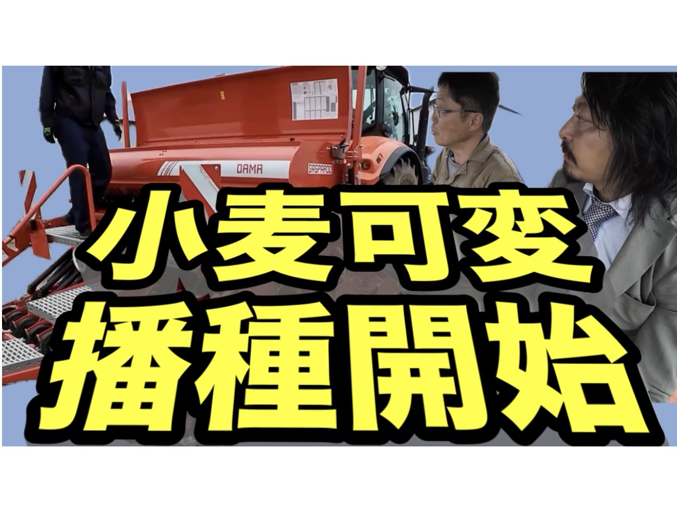 まずは前田さんがやってきてザルビオからデータを取得し、可変播種マップを作成してくれました。そして、トリンプルの画面の大きなGPS装置を取り付けました。続いてマスキオののパワーハローとガスパルドの播種機をクボタm7に装着。今年は小麦全圃場で可変播種を行います。どのように発芽して生育してくれるのかとても楽しみです。
