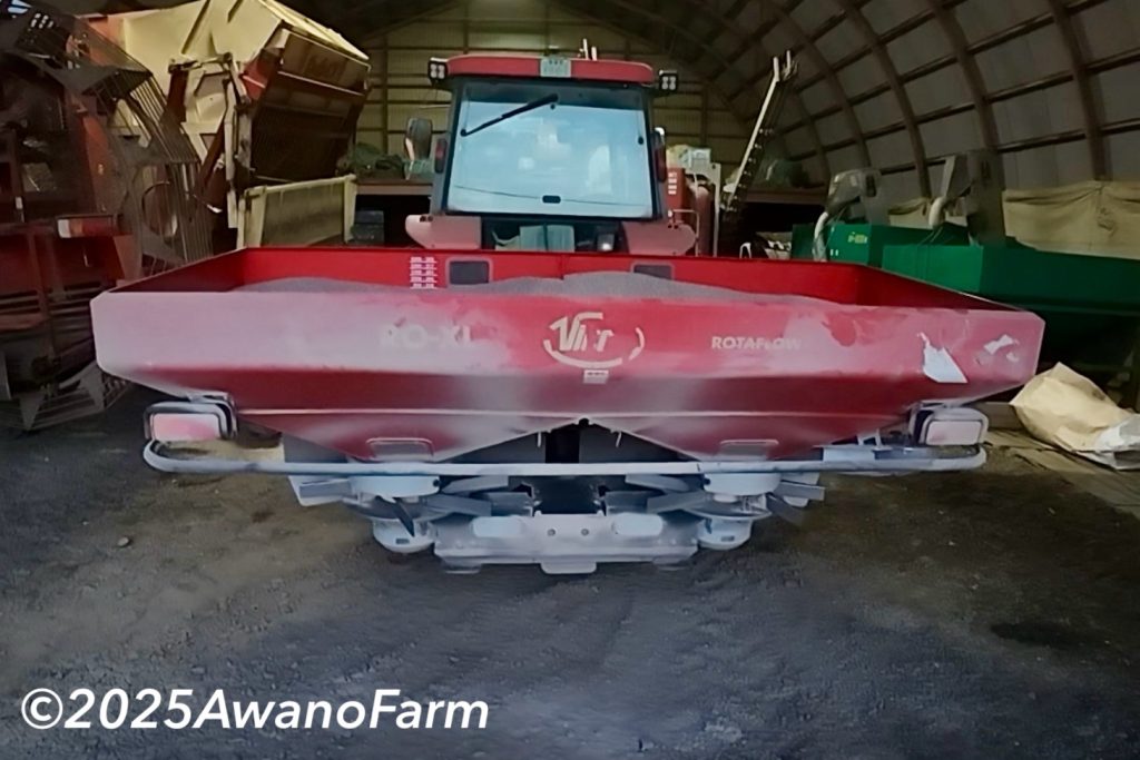 いつもはもう少し早めに散布をしていたのですが、ワイドスプレッターが破損したりとなかなかタイミングが合わず、この時期となりました。まずは購入したスプレッターをトラクターに装着して、休日だったので前田さんに使い方を電話で聞きながら散布しました。電動シャッターなので片側散布も楽々でした。朝からFMJAGAさんの生放送があったのですが、古い肥料が固まっていて手こずりましたがなんとか間に合いました。このワイドスプレッダーはとても良い機械でした。見つけて頂いた北海道クボタさん、ありがとうございます。また、ご指導頂いた前田さん、スモールボールさん、本当にありがとうございました。